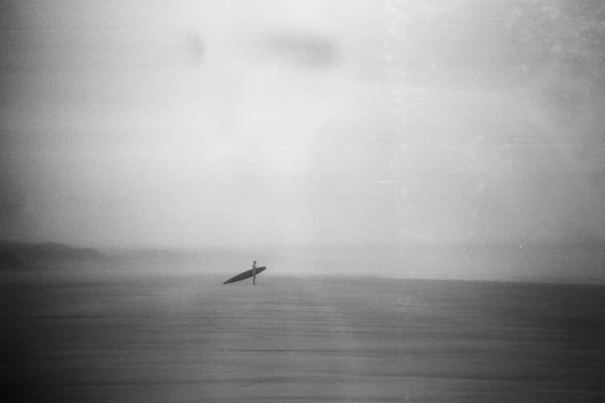 Harry and I are both possessed with a curious disposition when it comes to surfboard design. We also possess a couple of pairs of gifted US Navy Seals swim shorts and my grandad’s 1930s Kodak box brownie, and they provided us with all of the excuses that we required to justify building our own cigar box. Books and scanned images of the pages of Popular Mechanics provided us with plans, and we adapted these for the materials that we had available to us, producing a 12’ finless Blake-esque surfboard. Shot on the 85 year-old box brownie, a 1960s TLR and various 35mm cameras, the documenting of our box’s maiden voyage proved to us that times may change, but the experience remains the same.