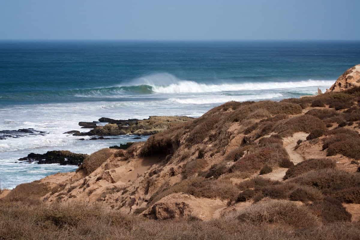 The strong winds and heavy rain that often accompany winter swells in Europe don’t make it this far south, and the additional distance gives the swell train a chance to get itself organized so by the time winter swells arrive on the Moroccan coast they are clean and well spaced. Whilst the country can boast a range of different breaks, it is the points of central Morocco, and the town of Taghazoute in particular, that are the real draw to visiting surfers. Just half an hour’s drive north of the coastal city of Agadir, Taghazoute boasts a series of world famous point breaks, as well as several reefs and beach breaks within a twenty-minute walk of the town. The microclimate around Agadir results in around 300 days sunshine a year, and the coastal mountains between Agadir and Cap Rhir (just to the north of Taghazoute) funnel the predominantly northerly winds offshore. The main selling point of the region is Anchor Point (a.k.a. Anka Point), a long right hand point that breaks from just in front of the ruins of an old anchor factory and, rumor has it, can break for a full kilometer all the way back to Taghazoute on a big day with a high tide. It needs a big swell to break properly and is best from low to mid tide, but can hold significant size and offers long, green walls to carve. There are multiple take-off spots that help to spread the crowd out on this, Morocco’s most famous wave.