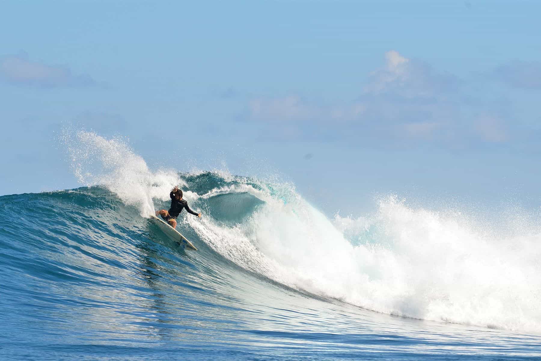 From the outer take-off zone all the way to the inner one, there’s a rock slab that produces more punchy and fast sections, that eventually turn into fat walls once the wave reaches the patches of sand under the inner take-off zone.