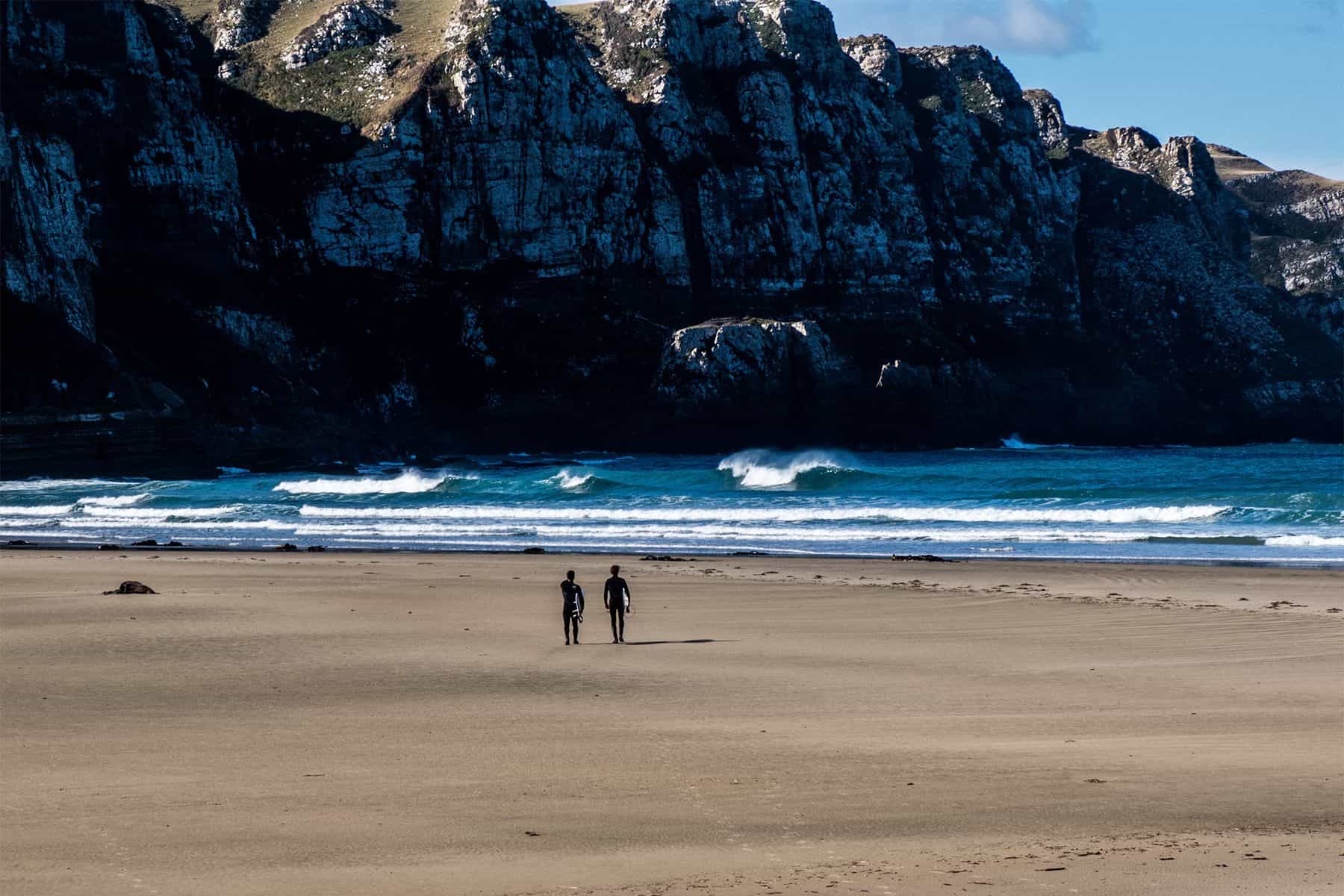 Upon entering the Otago region, things start getting more interesting, both in and out of the water. With strong Scottish and Maori heritage, Dunedin is one of the best surf regions in the South Island, with an impressive number of banks one after the other. Even with the low water temperatures there is a strong local surf scene – many of these surfers are students. Just before entering the city it is worth checking out the spot of Aramoana, which can be tricky to find but if the swell is pumping from the NE it is sure to produce some quality, hollow peaks. Two suburbs of Dunedin, St. Kilda and St. Clair, share one long stretch of sandy beach facing south – the first suburb hosting a versatile beach break consistent enough to provide for the locals, whilst the latter has the charm of a right-hand point added to its also mainly beach-break features. Both spots work best on a southern swell, with the wind blowing from the NW. There’s a huge tidal range here – which usually affects smaller days – but otherwise the waves are easy to read. Fortunately, once you head out of Dunedin southbound, the road rejoins the coastline and sticks to it for a good 20km before turning back to Highway 1. The town of Brighton features a spot with the same name, which is worth checking out if the swell has any south to it as it’s just off the main road. This right-hand point peels along a small peninsula and can produce long, fun walls on a good day. Ironically, even though only a 20-minute drive away from Dunedin, it is rarely crowded.