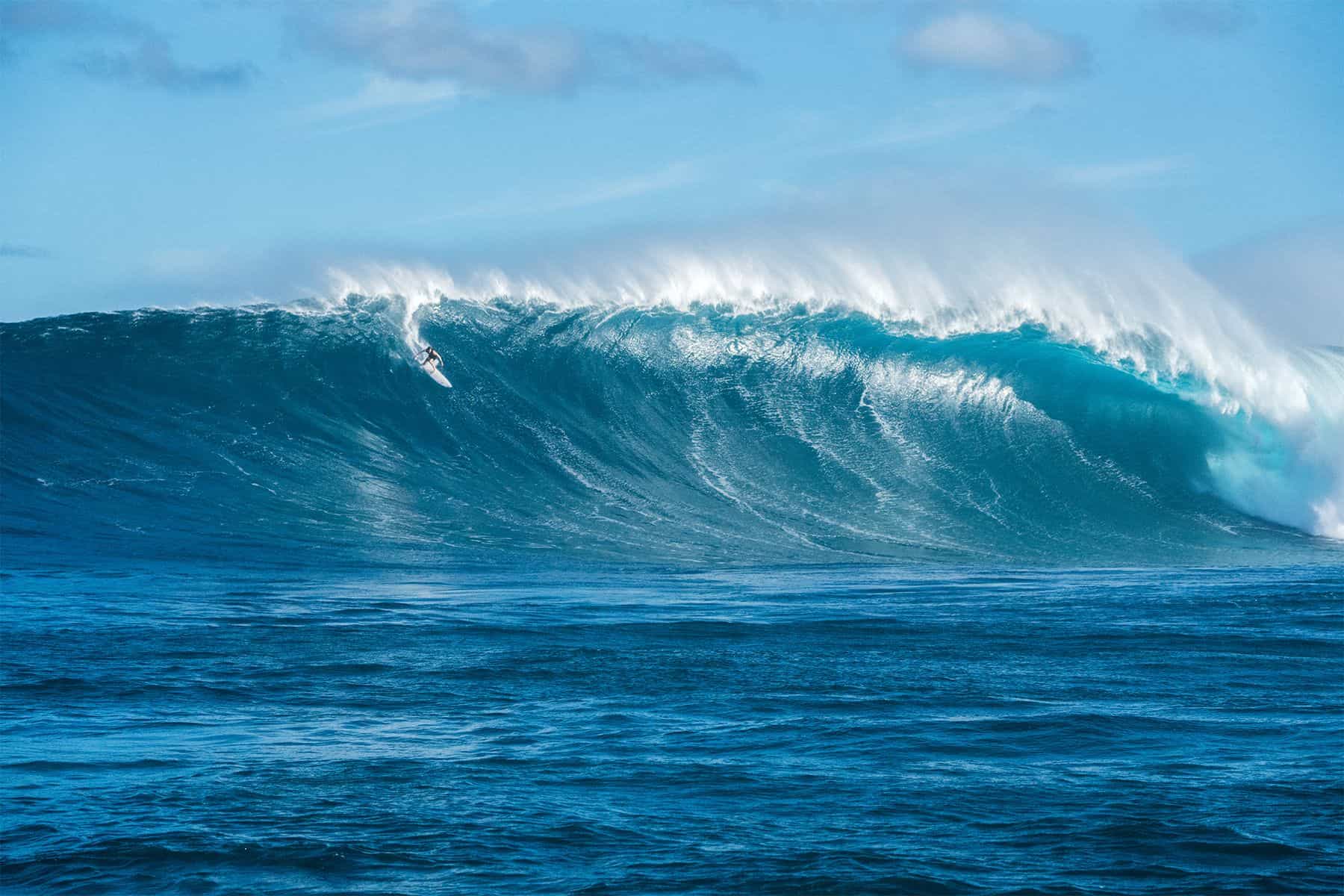 Out in the line-up, I got caught inside the biggest set I had ever seen in my life – five twenty-five-foot waves. I thought I was going to drown. I had made up my mind to get out of the water and was paddling back towards the channel when something extraordinary happened. Because I had paddled wider, I happened to be in the right place at the right time when the next big set came. The wave broke over the crowd; I spun, paddled for it, and I remember standing at the top of this huge bomb, dropping in, and feeling speed like I had never felt before.
