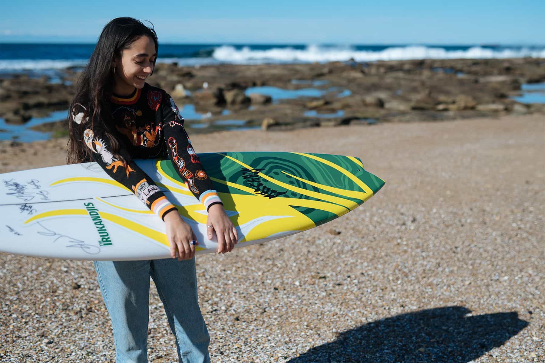 Surf Simply caught up with Jasmine Miikika Craciun, an Aboriginal Graphic Designer and Visual Artist from Newcastle, NSW – the hand, head, and heart behind the design.