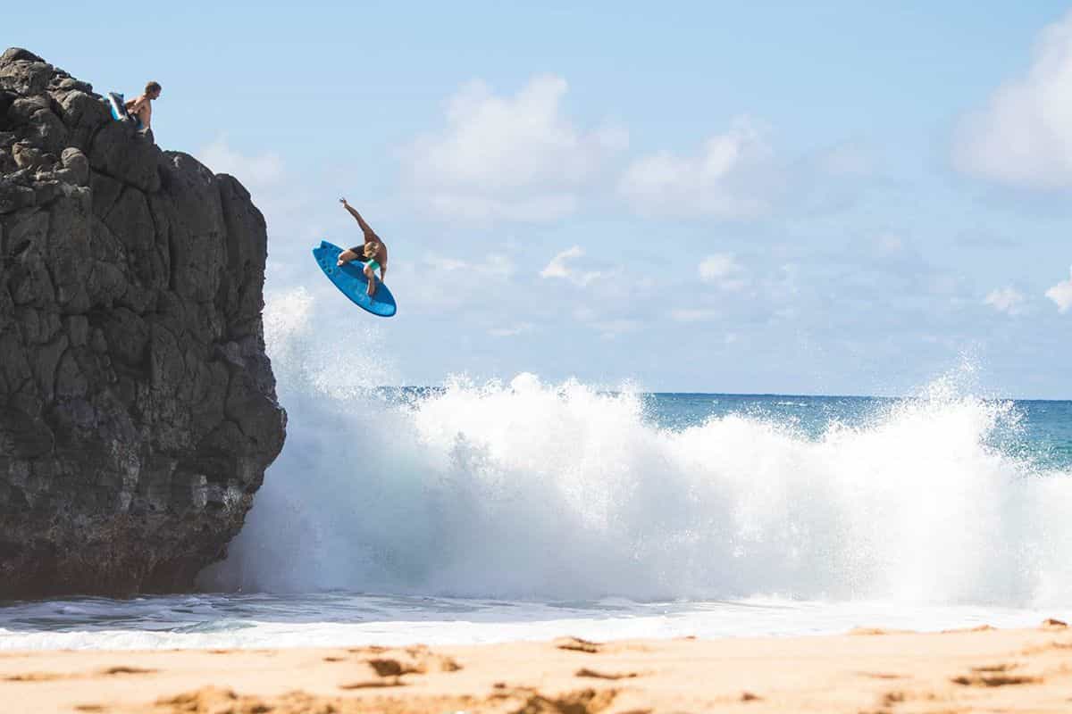 These experiments developed into the original “Black Ball Beater” surfboards released by INT surfboards in 2002 – sub five foot, soft topped, slick bottomed and often finless (to comply with the rules) surfboards. But remarkably these surfboards, which arguably sacrifice significant performance characteristics in order to conform to the rules affecting a small number of the world’s surf population, spread beyond beaches affected by summer-time safety controls. Soft top surfboards are no longer the sole domain of surf schools as sizes shrink and increasing numbers of surfers add a beater board to their quiver for playful shorebreak sessions, inspired by footage and photos of Catch Surf ambassadors Jamie O’Brien and Kalani Robb.